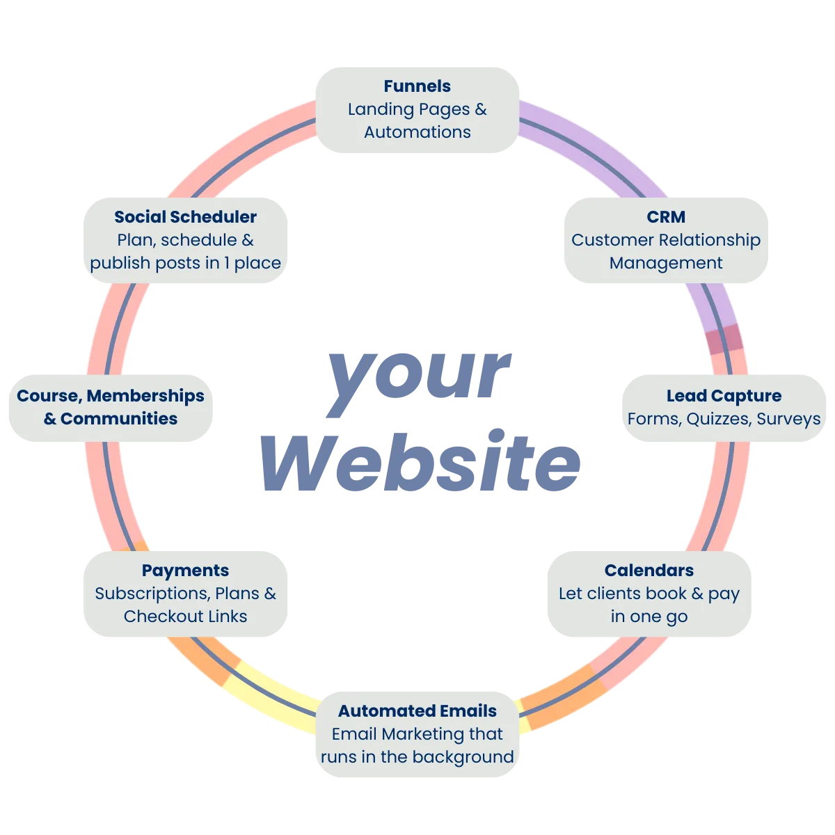 A website is only one piece of the puzzle. You also need a way to capture leads, take payments, book calls, deliver content, and follow up with your audience automatically. That’s where most systems fall short.