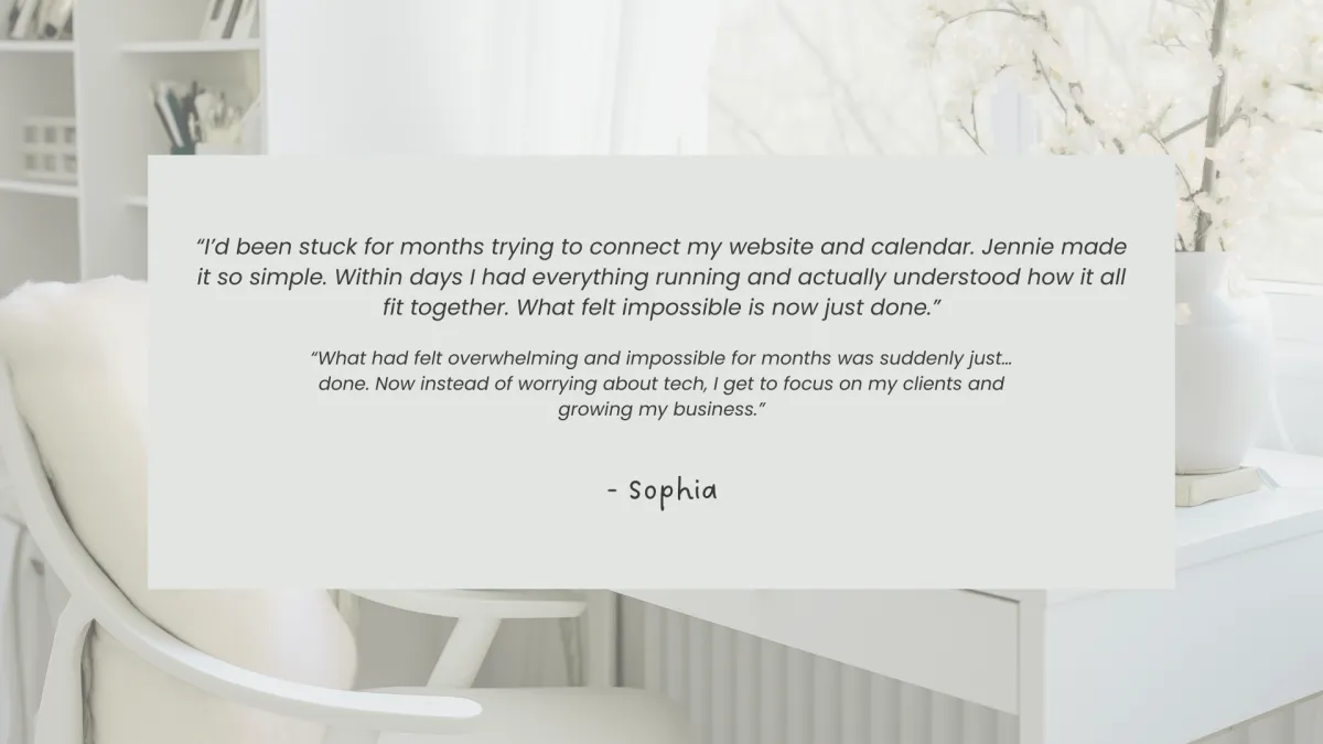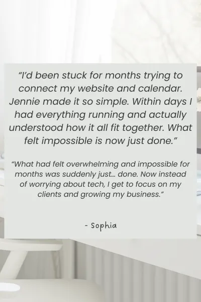I’ve helped dozens of women simplify their tech, launch faster, and grow their businesses without tech stress.