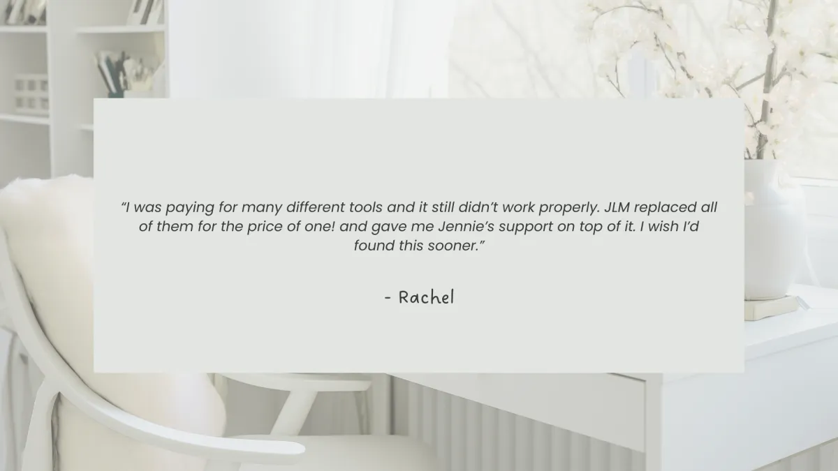 Support isn’t an afterthought - it’s built into the JLM Growth System experience. Whether you’re DIY-ing or going the Done-For-You route, I’m here to make sure you never feel stuck or overwhelmed.